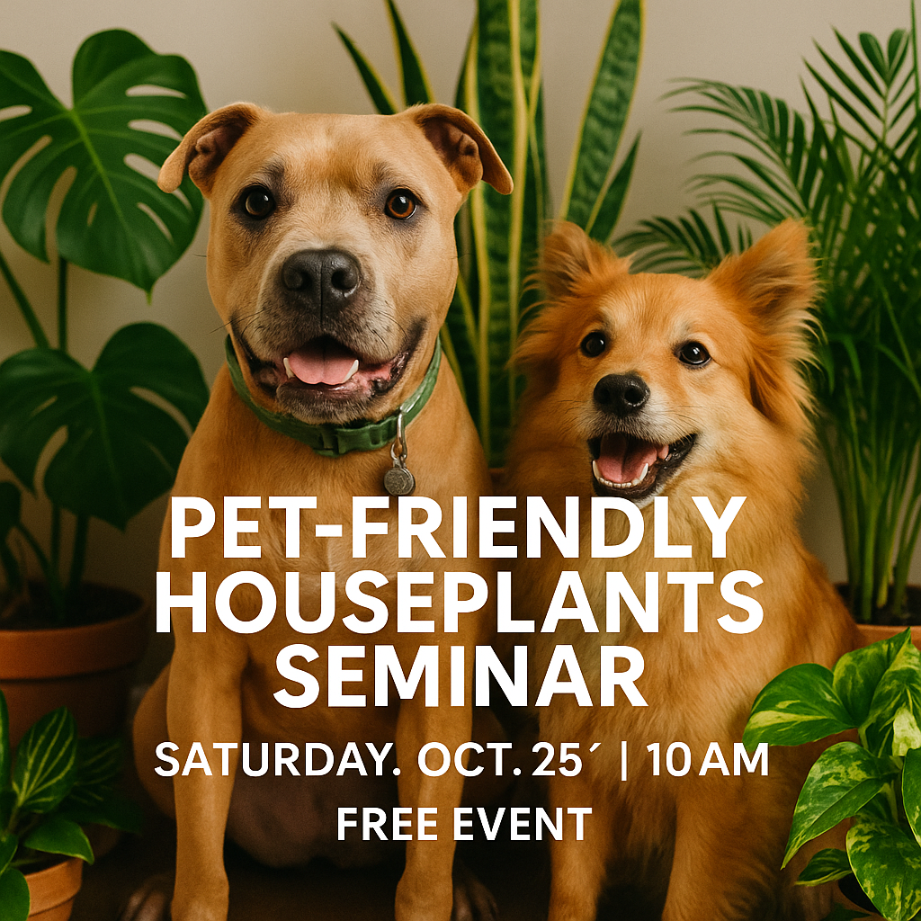 Bring your furry friend and join us for a fun and informative seminar on Pet-Friendly Houseplants during our Howl-O-Ween Festival!
